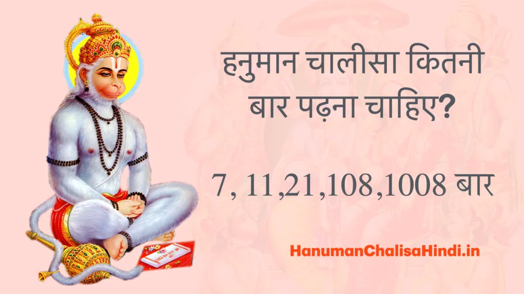 हनुमान चालीसा का पाठ व्यक्ति की श्रद्धा और आवश्यकता के अनुसार कितनी बार भी किया जा सकता है। दैनिक एक बार पाठ करने से लेकर विशेष साधना के लिए 1008 बार पाठ करने तक, हनुमान चालीसा का हर पाठ व्यक्ति को अनेक आध्यात्मिक और भौतिक लाभ प्रदान करता है। यदि आप भी अपने जीवन में शांति, समृद्धि, और सफलता चाहते हैं, तो हनुमान चालीसा का नियमित पाठ करें और भगवान हनुमान की कृपा का अनुभव करें।